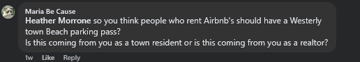 Discussed amendments to the short-term rental ordinance, which brought out the usual petit bourgeois to protest. The current point of tension is whether the ordinance ought to apply town-wide or only north of Shore Road. Councilor Niemeyer said that he has come to realize that short-term rentals, especially in our residential zones, pose an “existential threat” to the character and culture of the town — an interesting parallel to NIMBY opposition to affordable housing.